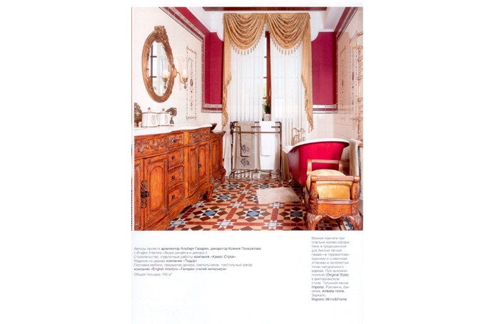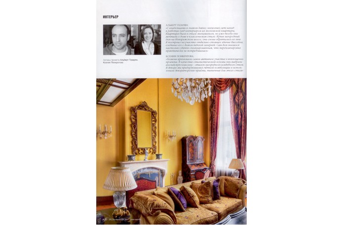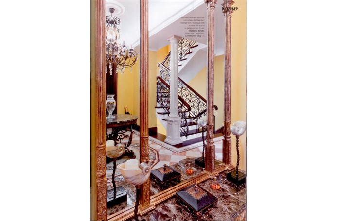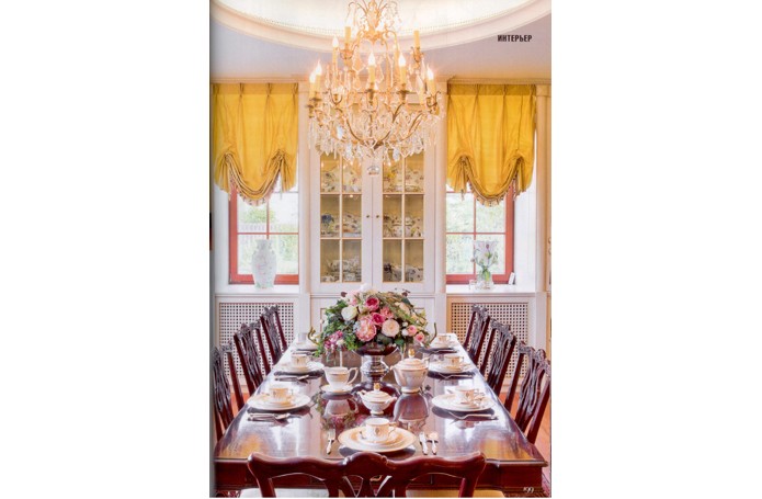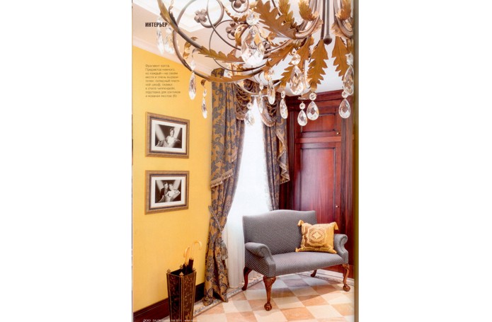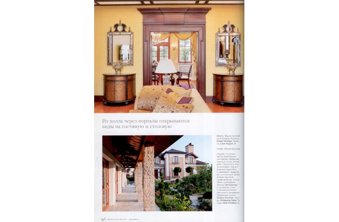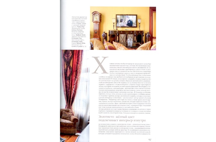 В солнечном свете Английский стиль в России любят за его основательность, аристократизм, элегантность и уют, а еще – за яркую цветовую палитру. Для парадных помещений этого подмосковного особняка декоратор компании «Английские интерьеры» Ксения Понкратова выбрала глубокий желтый цвет. АЛЬБЕРТ ГАЗАРЯН: «С владельцами я знаком давно; несколько лет назад я работал над интерьером ах московской квартиры. Квартира была в стиле минимализм, но уже тогда они мечтали о доме в классическом стиле. Купив загородный дом на Новорижском шоссе, они снова обратились ко мне. Я построил на участке отдельно стоящее здание бассейна, соединил его с домом тёплой галереей. Сам дом оказался настолько удачно спланированным, что перепланировка практически не потребовалась» КСЕНИЯ ПОНКРАТОВА: «Хозяева принимали самое активное участие в воплощении проекта. В качестве стилистической основы они выбрали английскую классику - эталон загородного усадебного стиля. В декоре мы придерживались чёткой композиции и использовали декораторские приёмы, типичные для этого стиля» Золотисто—жёлтый цвет подсвечивает интерьер изнутри Хозяева хотели, чтобы интерьер их загородного дома был насыщенным предметами, уютным. Из нескольких классических стилей они выбрали в итоге английский, но захотели его несколько адаптировать, сделать более подходящим для сегодняшней жизни. Им хотелось, например, чтобы в интерьере нашлось место вещицам, привезённым из путешествий. Чтобы интерьер был солнечным, а мебель смотрелась так, как будто ее подбирали на протяжении нескольких поколений. И теперь, когда проект завершён, хозяева гордятся, что их дом выглядит на уровне лучших образцов английской и американской дизайнерских школ. Во-первых, из-за планировки: все комнаты первого парадного—этажа компактно собраны вокруг просторного холла, в который попадаешь из небольшой прихожей. Во-вторых, в туманном Альбионе сияющий ярко-жёлтый цвет стен считается испытанным интерьерным средством против туманов, смога, плохой погоды: он как бы подсвечивает интерьер изнутри. «В Лондоне и в Москве, впрочем, погода очень похожа, и для подмосковного особняка идеально подойдут приемы декора английской усадьбы, которые помогают сделать интерьер солнечным, - рассказывает автор проекта Ксения Понкратова. - Например, цвет охры на стенах, а также яркое золото картин, зеркал, люстр и шёлковых занавесей, которые кажутся словно сделанными из золота». Ярко-желтый колорит стен поддержан тёплым светом многочисленных настольных ламп, торшеров и бра: локальный свет тоже важная принадлежность английского стиля. Авторы решили холл как торжественное помещение, из которого через порталы открываются виды на гостиную и столовую и оттуда лестница ведёт в цоколь и на второй этаж. (Там располагаются спальни с ванными комнатами, а внизу, в цокольном этаже,— развлекательная зона с бильярдной, кинозалом, тренажёрным залом, комнатой отдыха.) Основные характеристики декора и планировки холла - насыщенная роскошь, укрупнённые размеры мебели, простор. Это подчеркнуто роскошное помещение, отделанное мрамором и с великолепной золочёной ковкой, которая добавляет парадному помещению холла легкости и ажурности. Витое кованое ограждение лестницы, пышная, как букет, кованая черная люстра, кованые основания мебели с лёгким о