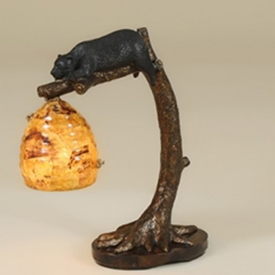 Оригинальная настольная лампа выполнена в виде медведя, лежащего на ветке из литой латуни. Прямоугольный плафон, изготавливаемый из морских раковин, дополняет дизайн лампы.НА ЗАКАЗ