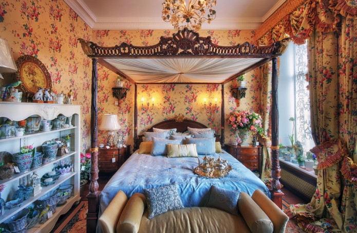 Время правления королевы Виктории с 1837 по 1901 г.г. называют «золотым веком» в истории Англии. В это время Англия превратилась в одно из самых мощных государств. Жизнь королевы Виктории – насыщенный, роскошный, искрящийся самыми яркими красками праздник жизни. Такими же чертами играет и переливается викторианский стиль, родившийся в эпоху царствования этой удивительной женщины. Он отличается необычайной плотностью, насыщенностью архитектурных деталей, яркостью орнаментов, буйством красок, многочисленными аксессуарами, красивой и удобной мебелью, обилием цветочных и лиственных узоров. Обычно в викторианском стиле выполняются те комнаты, где протекает частная жизнь – кухня, спальня, ванная.