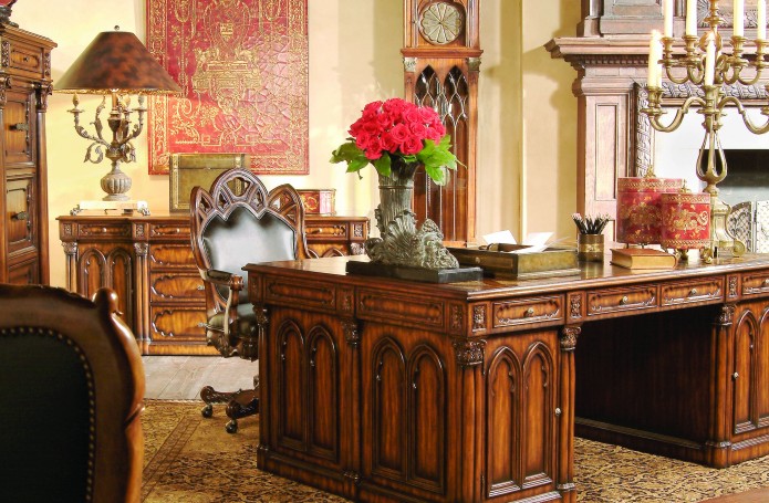 Тюдор и готика – это средневековые английские стили. Стиль английского ренессанса Тюдор назван по имени королевской династии, правившей в Англии весь ХVI век. Используйте его, если хотите создать в своем доме обстановку настоящего английского средневекового замка. Украшайте стены и потолки резными панелями и сложным расписным орнаментом на коже и обоях. Декорируйте интерьер гобеленами, восточными коврами. Для занавесей подберите тяжелые бархатные и льняные шторы со средневековым узором. Массивная мебель в ренессансном стиле выполняется из дуба и украшается резьбой. Огромные кровати с балдахином на четырех массивных резных столбах до сих пор стоят в английских замках и их реплики в точности воспроизводят английские мастера.