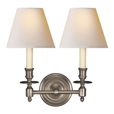 Бра на 2 свечи в стиле современная классика. Каркас и крепление выполнены из металла с отделкой состаренный никель. В комплекте два бумажных абажура.НА ЗАКАЗ