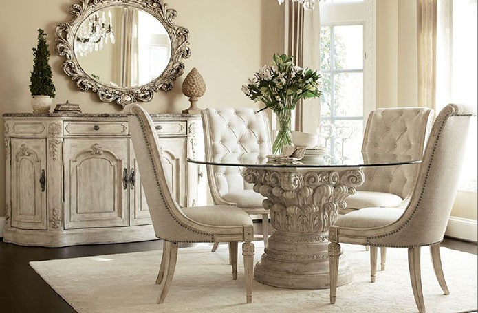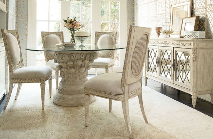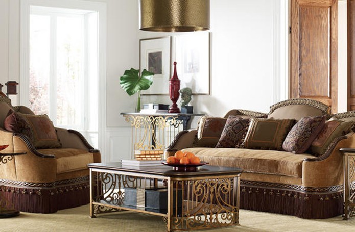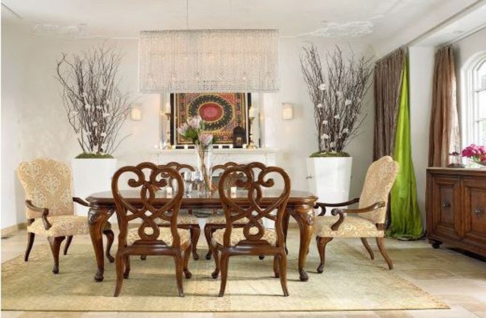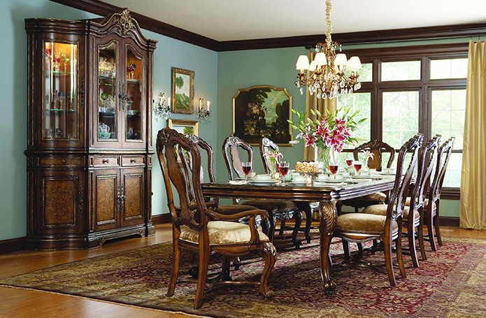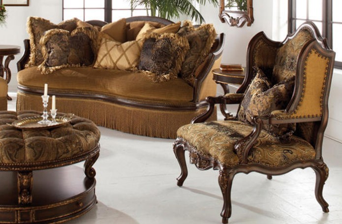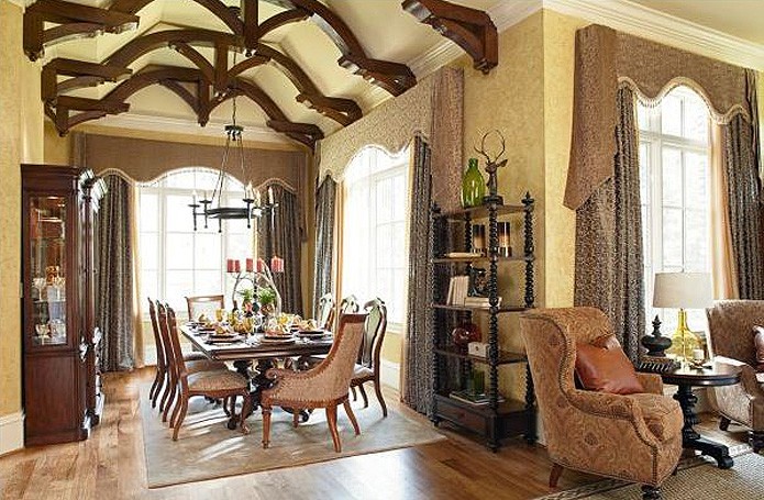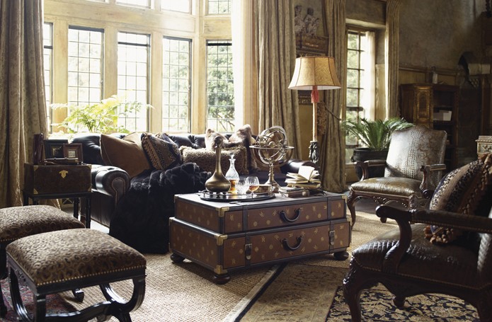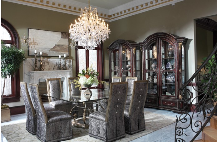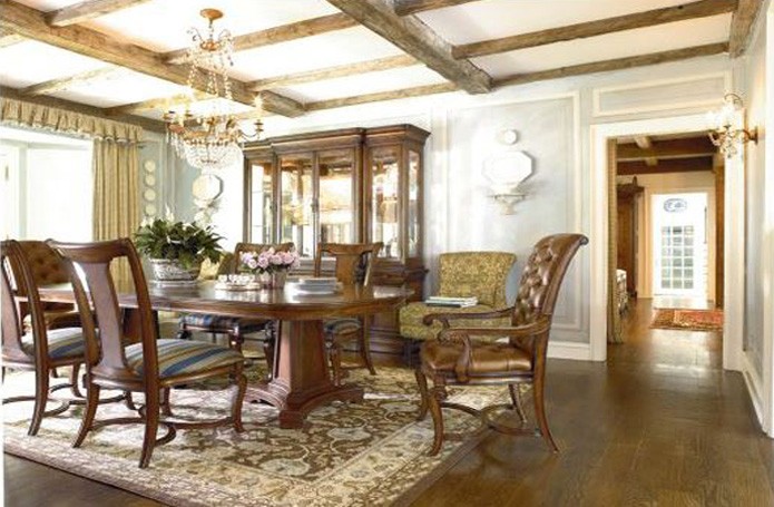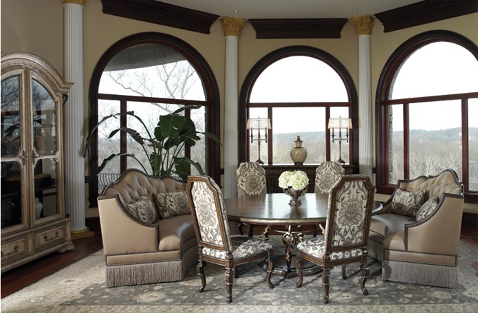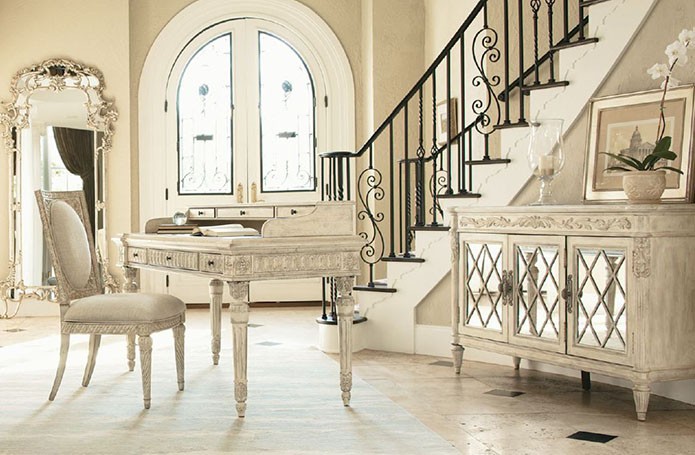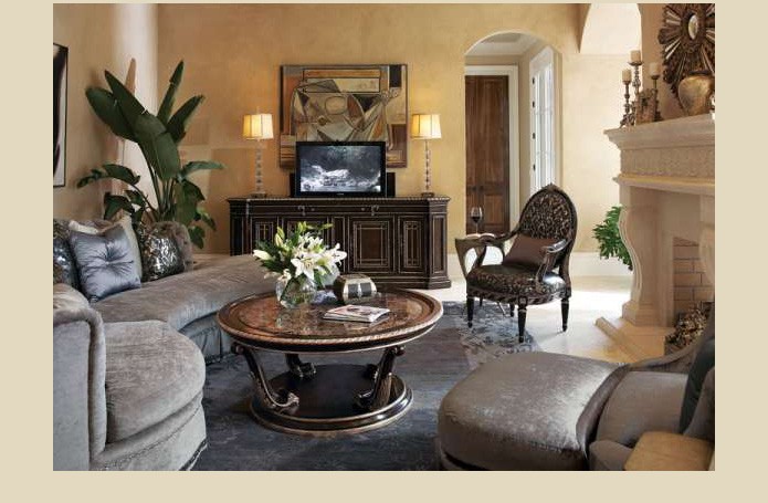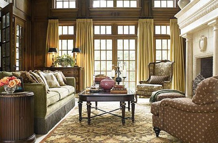 Интерьеры в американской классике характеризуются роскошью и основательностью. Это достигается за счет использования мрамора, резьбы по дереву, отделки черным лаком, дорогих тканей, бронзовых настольных ламп и декоративных деталей (заклепок на мебели). Гостеприимная и доверительная атмосфера буквально обволакивает любого, кто входит в комнату. Настольные лампы и торшеры создают мягкое освещение. Массивное «ушастое» кресло в духе Королевы Виктории, неприменимый атрибут кабинета в американском классическом стиле, приглашает опуститься на его мягкое сиденье, погладить гладкие велюровые подлокотники… В нем приятно придаваться философским размышлениям или слушать рассказы хозяина кабинета о его путешествии по Европе на манер английских джентльменов XVIII века, совершавших свои «гранд – туры». Привезенные трофеи - сокровища прежних поколений - занимают почетные места на полках: среди них амфоры, кувшины, шкатулки, фигурки животных, гравюры и гобелены, картины и карты. В неспешной беседе за чашкой чая забываешь о времени… И лишь маятник старинных готических часов ритмично отсчитывает его ход.