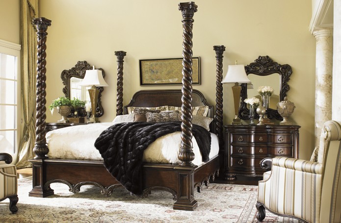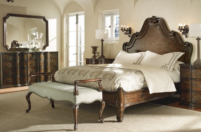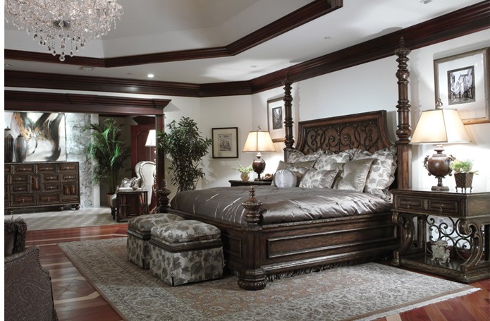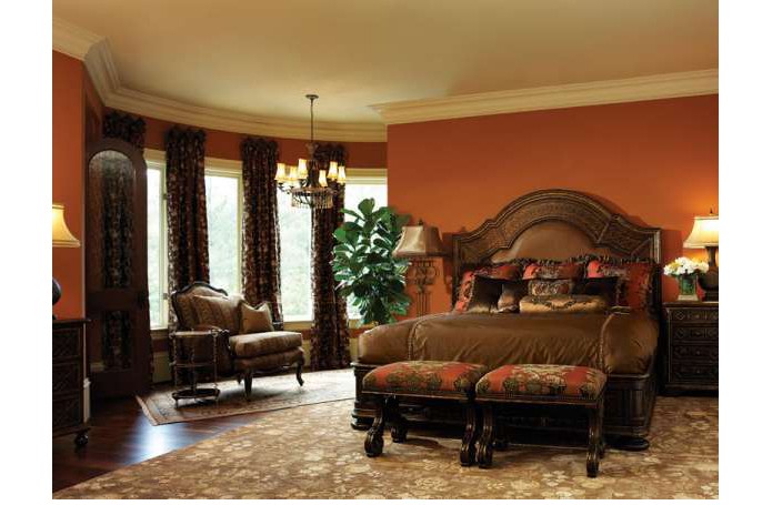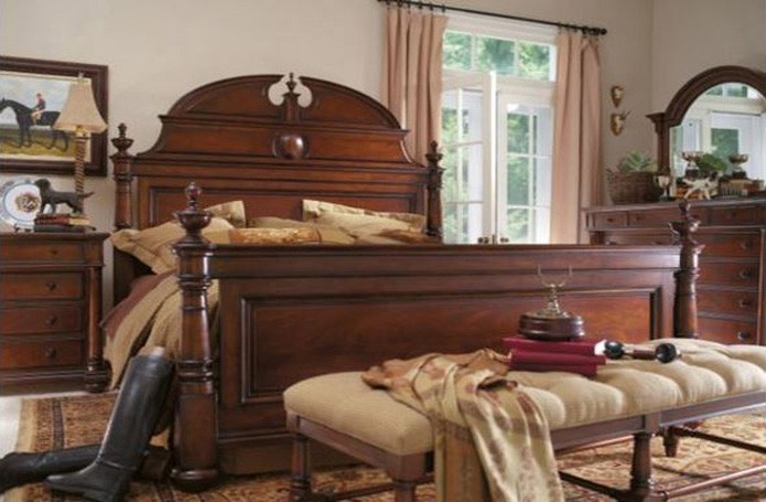Американский стиль в интерьере спальни привносит строгую и то же время изысканную атмосферу, создавая гармоничное единство. Здесь реализован истинно американский подход к родовому поместью. В интерьере чувствуется благородство и глубина. Здесь все говорит о респектабельности хозяина. Деревянные панели на стенах, внушительные молдинги, массивные дверные порталы и мебель темного дерева, тяжелая фурнитура придают интерьеру основательность.