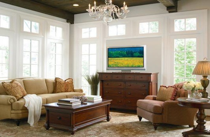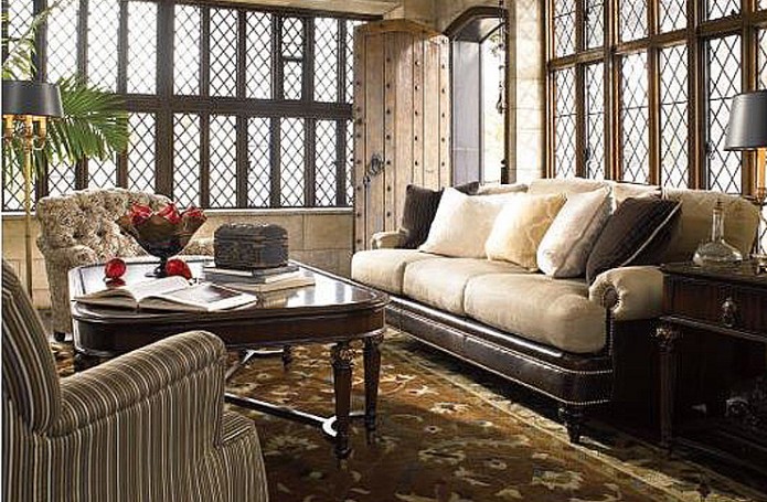 У истоков американского стиля в интерьере - классическая английская стилистика, ведь первыми жителями Северной Америки были британцы. Американским стилем в интерьере гостиной подчеркивается величественность, элегантность и сдержанность. Свободное и светлое пространство — необходимое условие для интерьера гостиной в американском стиле. Декоративные колонны и арки используются для зонирования гостиной. Американский стиль в интерьере гостиной эклектичен и допускает комбинирование самых разнообразных предметов, цветов и фактур. Традиционные материалы гармонично сочетаются с полимерами, композитами и высокотехнологичными сплавами. В дизайне интерьера гостиной используется классическая американская массивная мебель традиционно высокого качества, зачастую с высокими подлокотниками. Кресла практически всегда дополняются пуфами. В американских диванах и креслах глубокие эргономичные сиденья и необыкновенно мягкие подушки, поэтому мягкая мебель весьма комфортна. Изготавливают такую мебель из лучших материалов – натурального дерева, кожи и ткани. Индивидуальность интерьера достигается сочетанием разных цветов кожи и обивок. Гостиная в американском стиле создается для комфортного общения больших семей. -