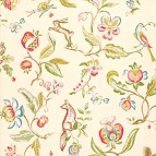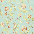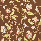 Прекрасное решение для маленькой уютной спальни - ткань и обои с одинаковым рисунком. Диагональный икат обивки и внутренней части балдахина своей простой геометрией подчеркивает красоту растительного орнамента.