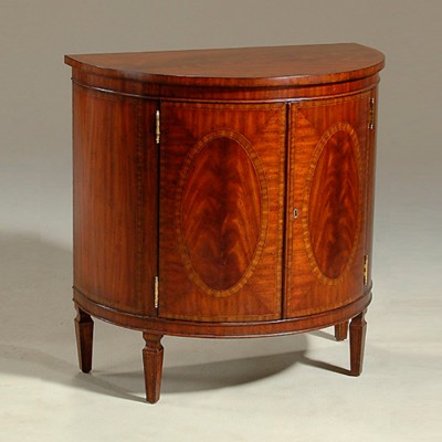 Небольшой американский комод из красного дерева, выполненный в стиле эпохи Регентства. Американский комод имеет полукруглую форму, конусообразные ножки и 2 дверцы.НА ЗАКАЗ