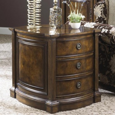 Небольшой комод с закругленным фасадом и тремя выдвижными ящиками. С четырех сторон фасад украшен декоративными резными колоннами, отделанными каннелюрами. В финишной отделке используется патина, подчеркивающая красоту дерева.
