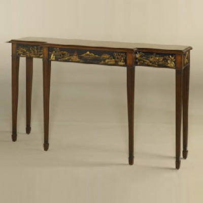 Узкая американская консоль в стиле шинуазри декорирована ручной росписью по черному фону. Американскую консоль удобно разместить в холле или коридоре, там где важно сохранить достаточное свободное пространство.НА ЗАКАЗ