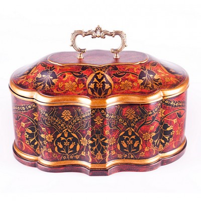 Великолепная декоративная шкатулка фигурной формы расписана в ручную в золотисто-красных тонах. Съемная крышка украшена декоративной ручкой из состаренной латуни. Красочная шкатулка, достаточно объемная, - прекрасный подарок на новоселье!10 000 руб.В НАЛИЧИИ