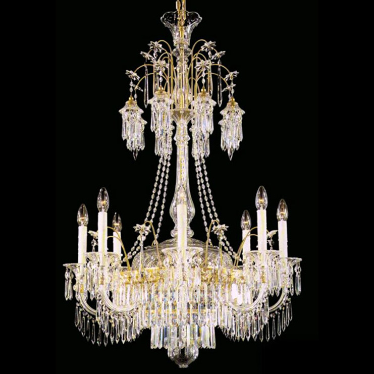 - Люстра на 12 свечей со сверкающими подвесками из хрусталя.