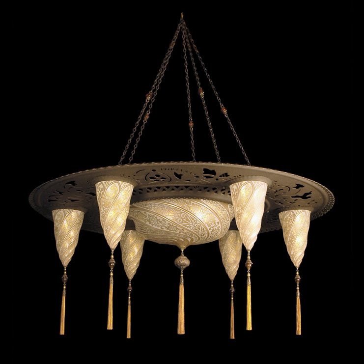 - Люстра с широким металлическим кольцом.
