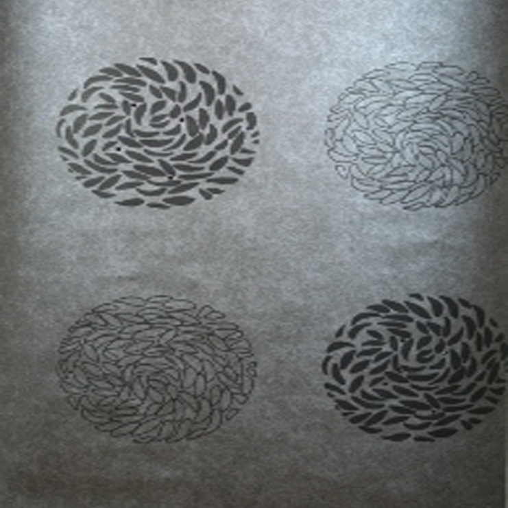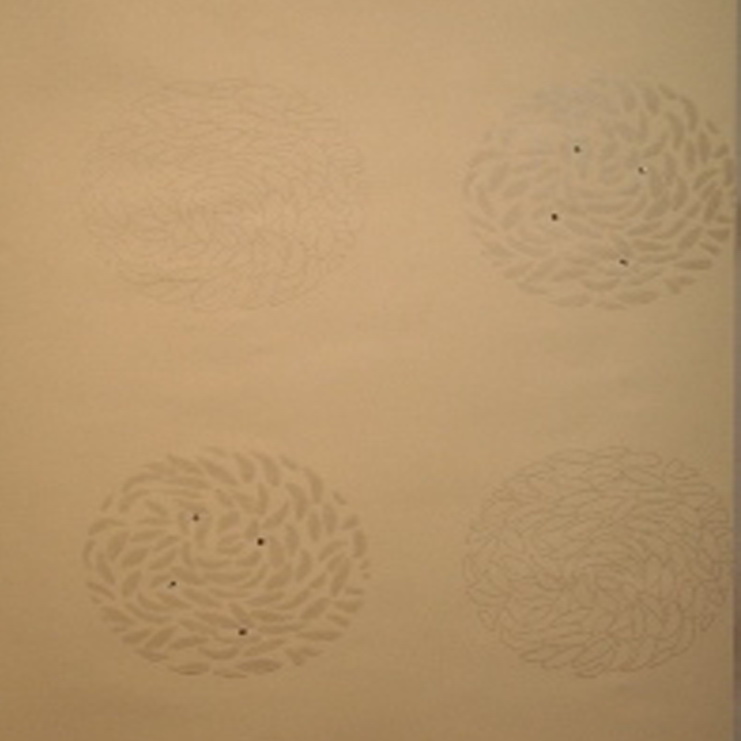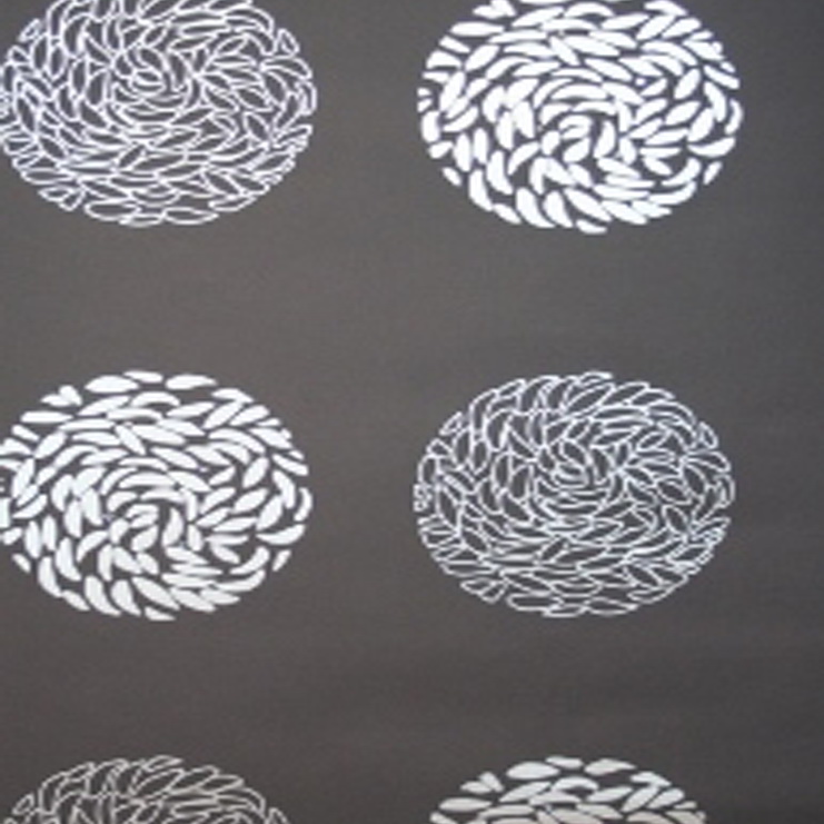 Обои с нежным однотонным фоном и крупным орнаментом в виде кругов из миниатюрных лепестков. Подобный рисунок создает легкую симметрию в помещении.