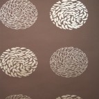 Обои с нежным однотонным фоном и крупным орнаментом в виде кругов из миниатюрных лепестков. Подобный рисунок создает легкую симметрию в помещении.